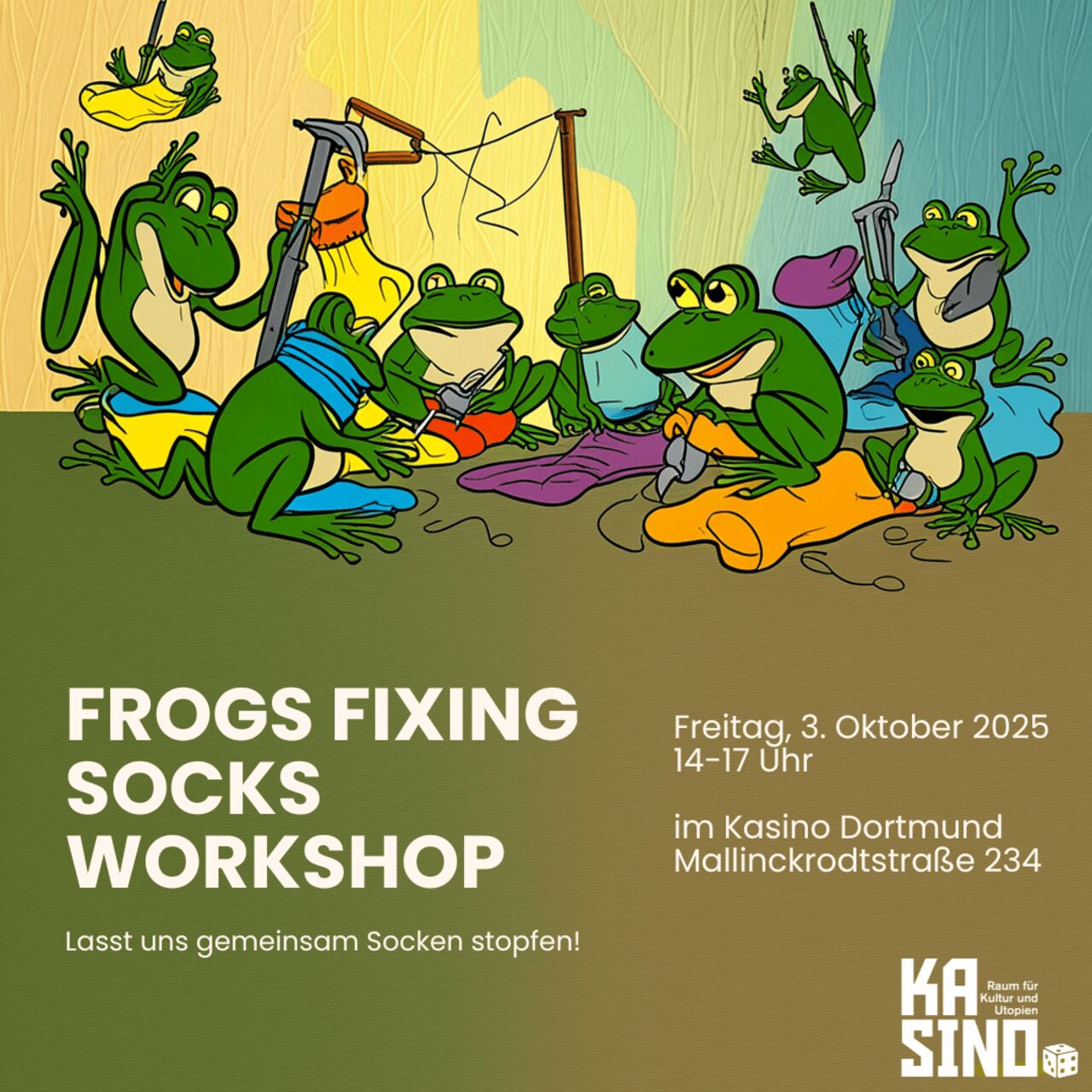 Frogs fixing Socks: Sockenstopf-Workshop
