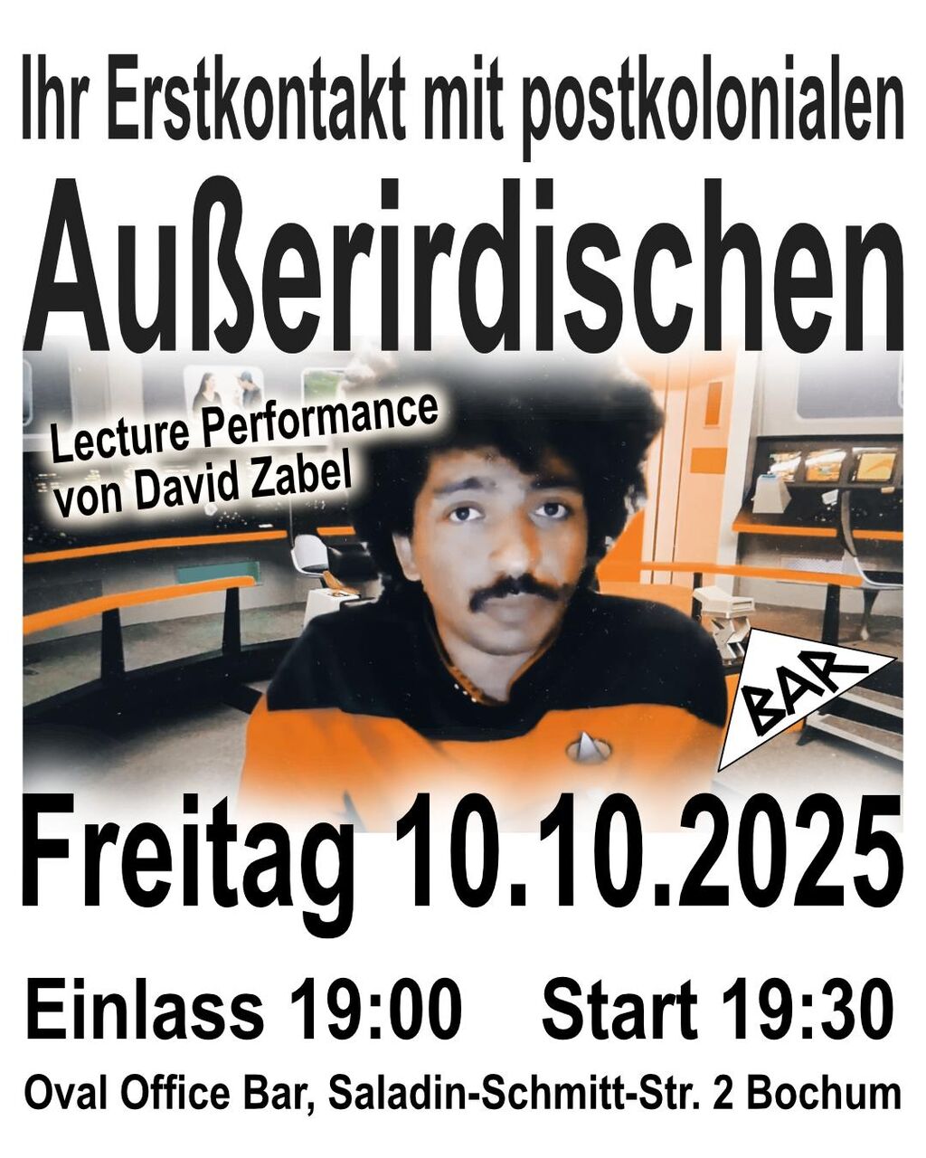 David Zabel lädt zu einer spannenden Lecture-Performance über afrofuturistische Zukunftsbilder in der Popkultur ein. Ausgehend von Octavia E. Butlers Xenogenesis-Trilogie führt er durch postapokalyptische Szenarien und die Denkschule des Afrofuturismus als empowernden Möglichkeitsraum. Im Fokus stehen außerirdische Wesen als Metaphern für Migration und Kolonialismus.