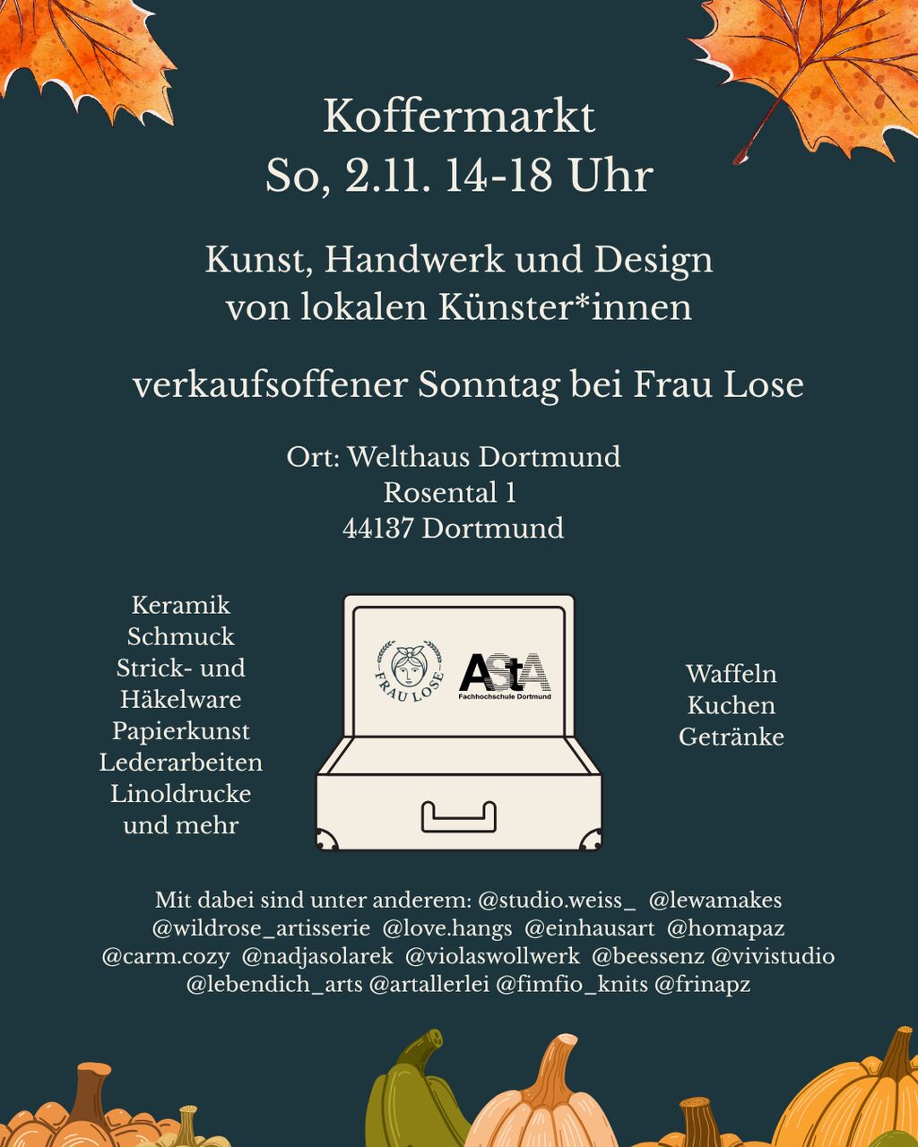 Keramik, Schmuck, Strick- und Häkelware, Papierkunst, Lederarbeiten, Linoldrucke und vieles mehr. Außerdem: verkaufsoffener Sonntag bei @frau_lose – fair, regional und nachhaltig