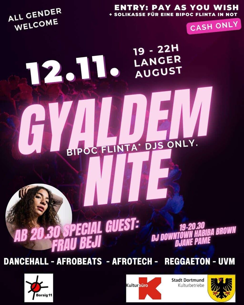 Gyaldem? (sprich gjal demm), das ist Jamaican Patois für eine Gruppe von Frauen. Denn es waren Gyaldem aus Dortmund, die diese Party ins Leben gerufen haben!