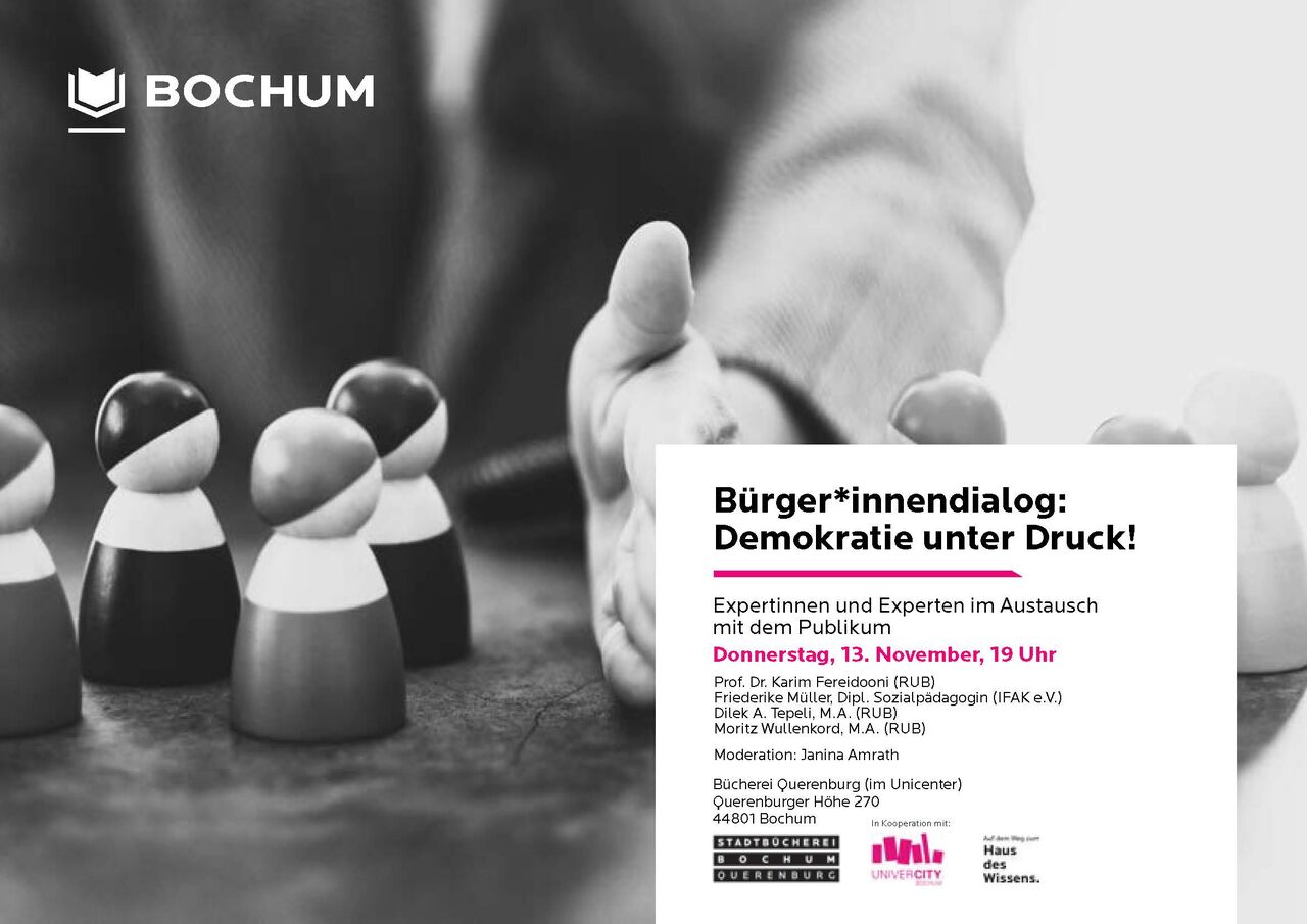 Ist unsere Demokratie in einer Krise? Beim Bürger*innendialog wollen wir gemeinsam mit Expert*innen aus Wissenschaft und Praxis über aktuelle Herausforderungen diskutieren.
