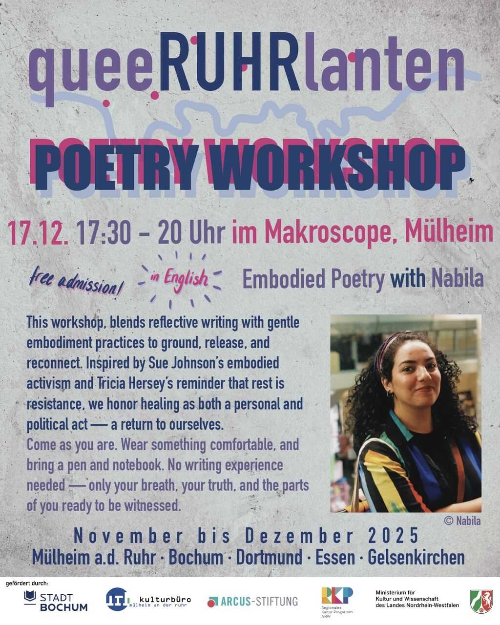 queeRUHRlanten Poetry Workshop: Embodied Poetry with Nabila [eng]