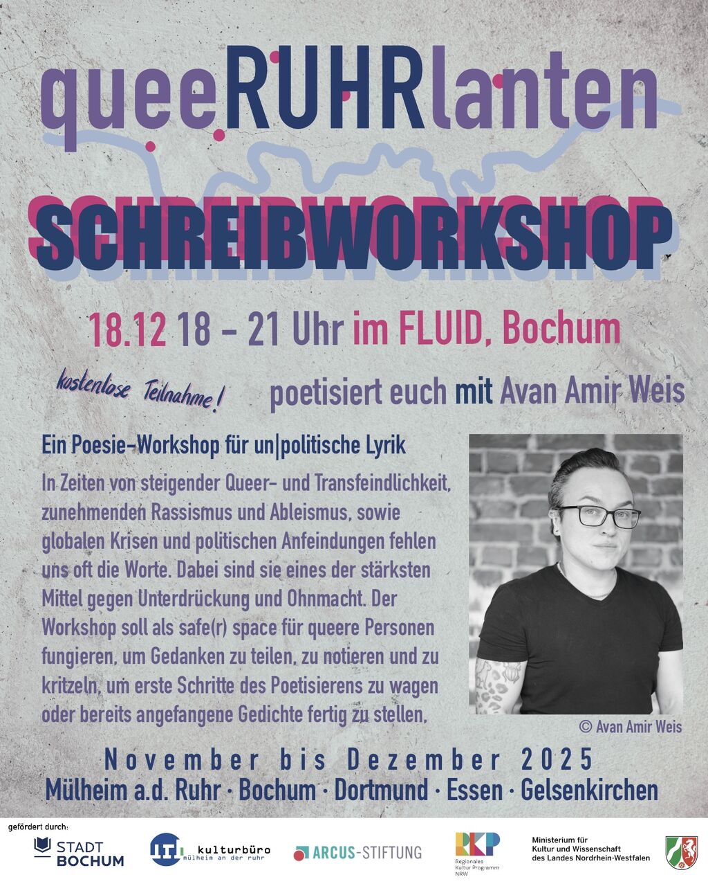queeRUHRlanten Schreibwerkstatt: poetisiert euch! mit Avan Amir Weis