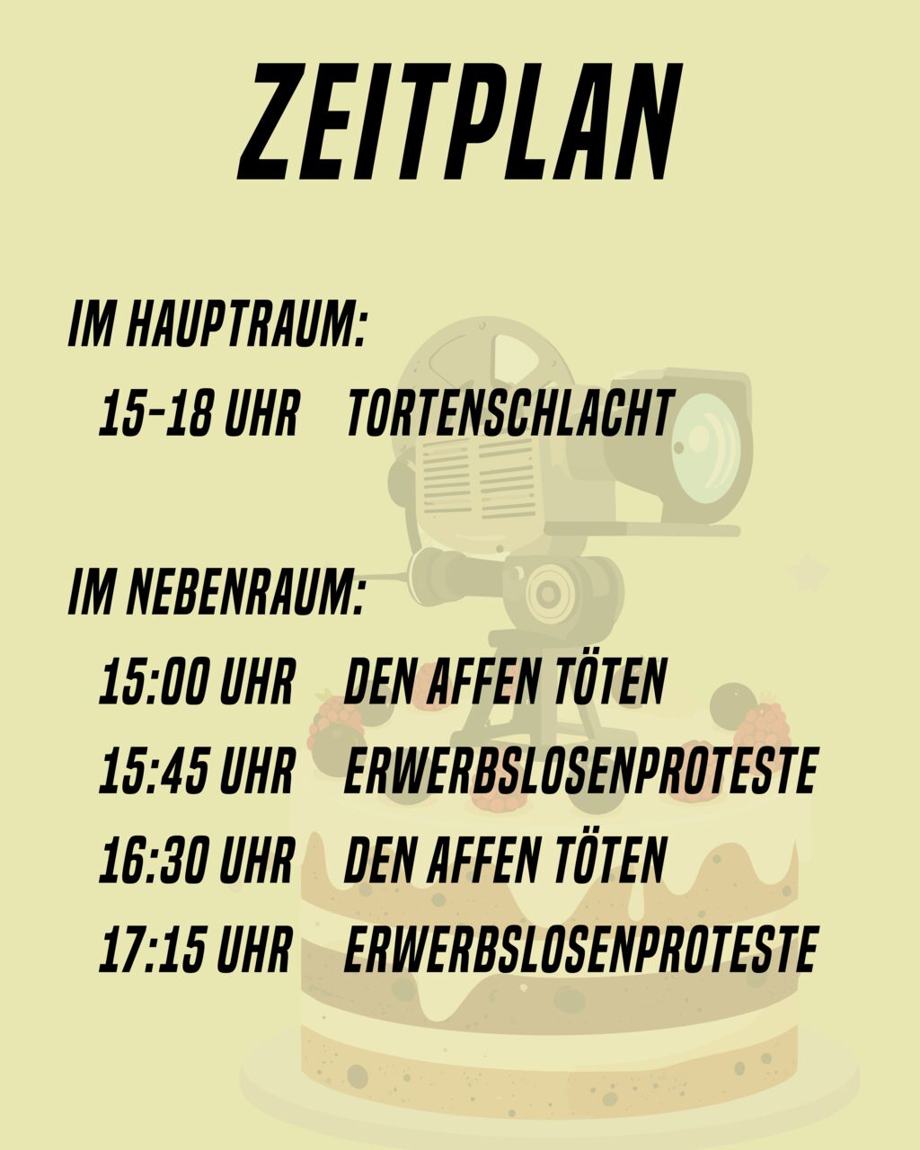 Riots Not diets! Wir laden euch herzlich zum Schlemmen und Schnacken ein! Dieses mal mit Kurzfilmen im Nebenraum, proudly presented by Schlafen statt Strafen!