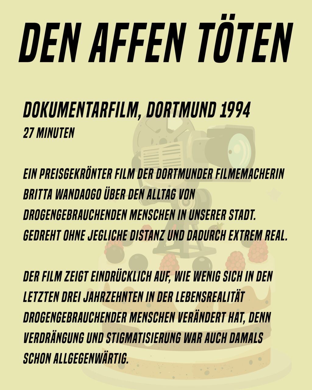 Ein preisgekrönter Film der Dortmunder Filmemacherin Britta Wandaogo über den Alltag von drogengebrauchenden Menschen in unserer Stadt. Gedreht ohne jegliche Distanz und dadurch extrem real.