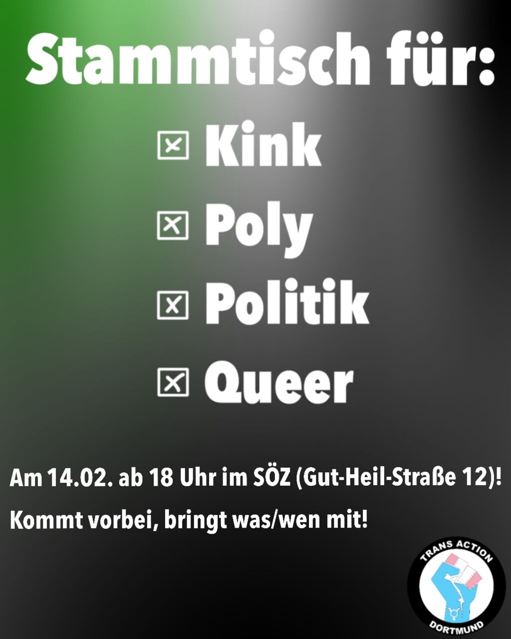 Stammtisch für alle Menschen die Kinky, Poly, Politisch und/oder Queer sind. Kommt zum Schnacken und für Snacks, bringt gerne was oder wen Süßen mit.