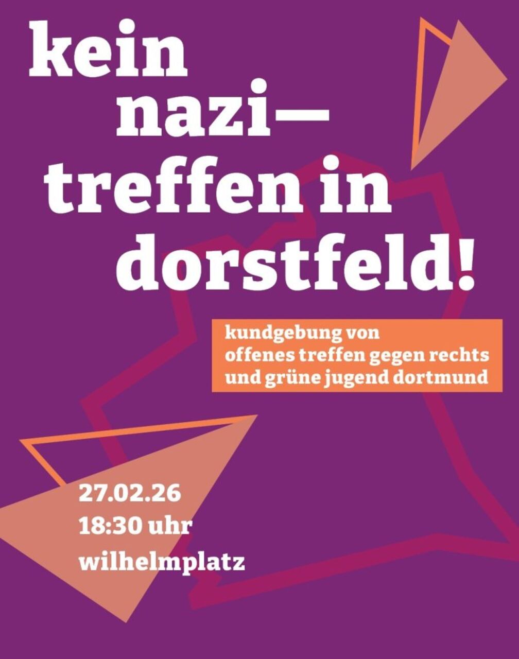 Wir, die unterzeichnenden Gruppen und Organisationen, rufen dazu auf, sich an jedem letzten Freitag des Monats in Dorstfeld für Gegenaktionen zu versammeln. Wir zeigen dort gemeinsam klare Kante gegen das Treiben der Neonazis der „HEIMAT Dortmund“.