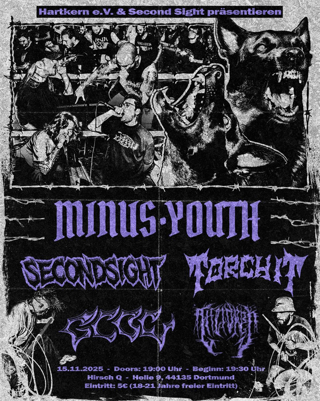 Ja Moin, was denn hier los?! Am 15.11.2025 erwartet euch in der Hirsch-Q in Dortmund die wahrscheinlich am besten kuratierte Hardcore-Show des Jahres. Mit dabei sind MINUS YOUTH, SECOND SIGHT, TORCHIT, GLOW und LIFETAKER – fünf Bands, die für kompromisslosen Sound, ehrliche Texte und schweißgetränkte Atmosphäre stehen. MINUS YOUTH bringen groovegeladenen Hardcore mit Haltung aus dem Stuttgarter Kessel, während SECOND SIGHT und TORCHIT für pure Energie und intensives Live-Feeling sorgen. GLOW mischen moderne Hardcore-Elemente mit düsterer Dynamik, und LIFETAKER liefern massiven Blastbeat-getriebenen Nihilismus direkt aus dem Ruhrgebiet. Das Ganze findet in schönster Atmosphäre der Szenekneipe Hirsch-Q statt. Stark! Einlass um 19:00 Uhr, Beginn gegen 20:00 Uhr. Getränke kalt, Stimmung heiß, keine Kompromisse – Hardcore so, wie er sein muss. Kommt ran!