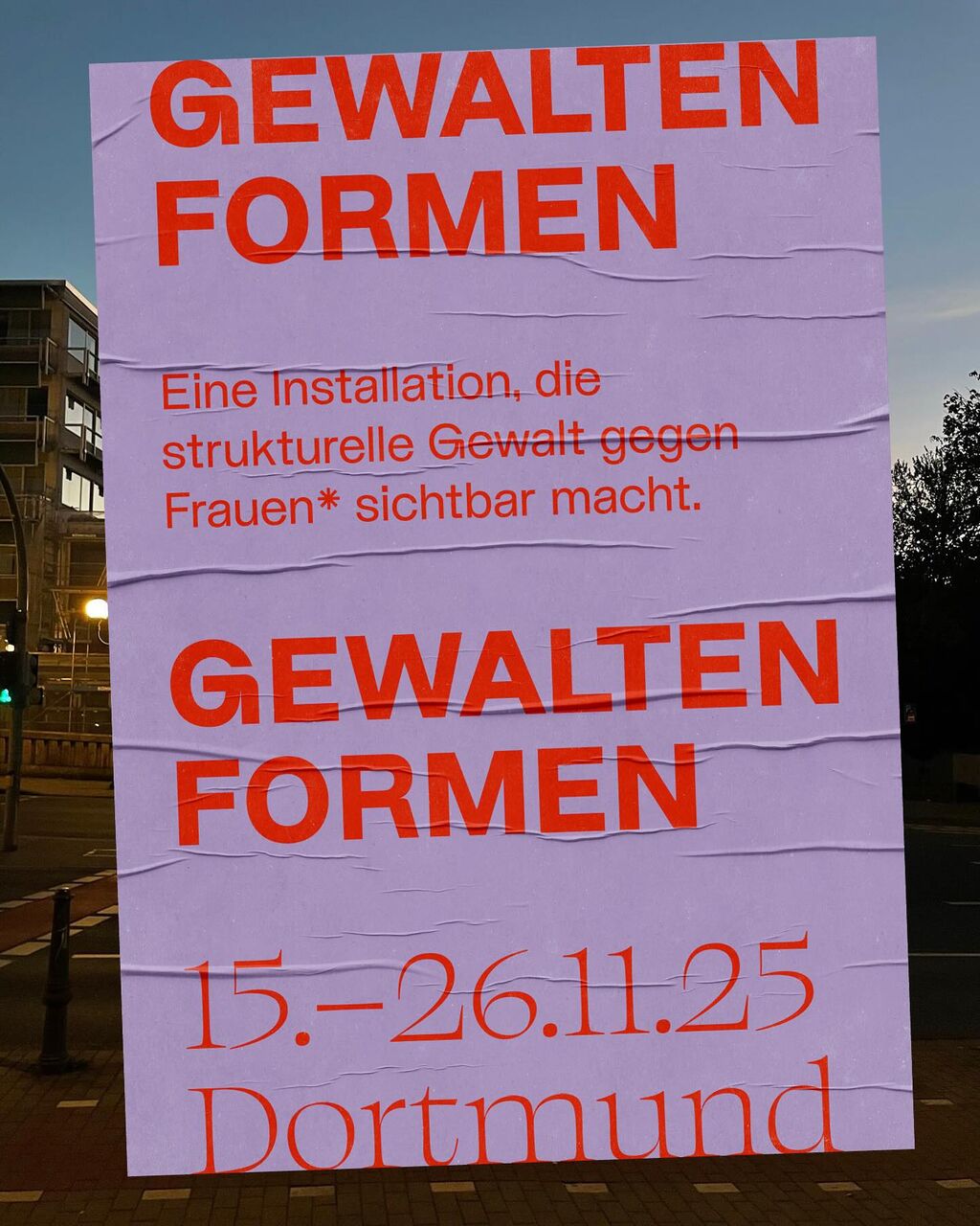 „Gewalten Formen“ ist ein künstlerisch-politisches Projekt, das strukturelle Gewalt gegen Frauen* sichtbar macht. Es entlarvt die Missstände in unserer Gesellschaft, Politik und den Staatsgewalten, die unsere Gesetze, Urteile und Institutionen formen – und bringt diese Informationen in den öffentlichen Raum, zugänglich für jede*n.