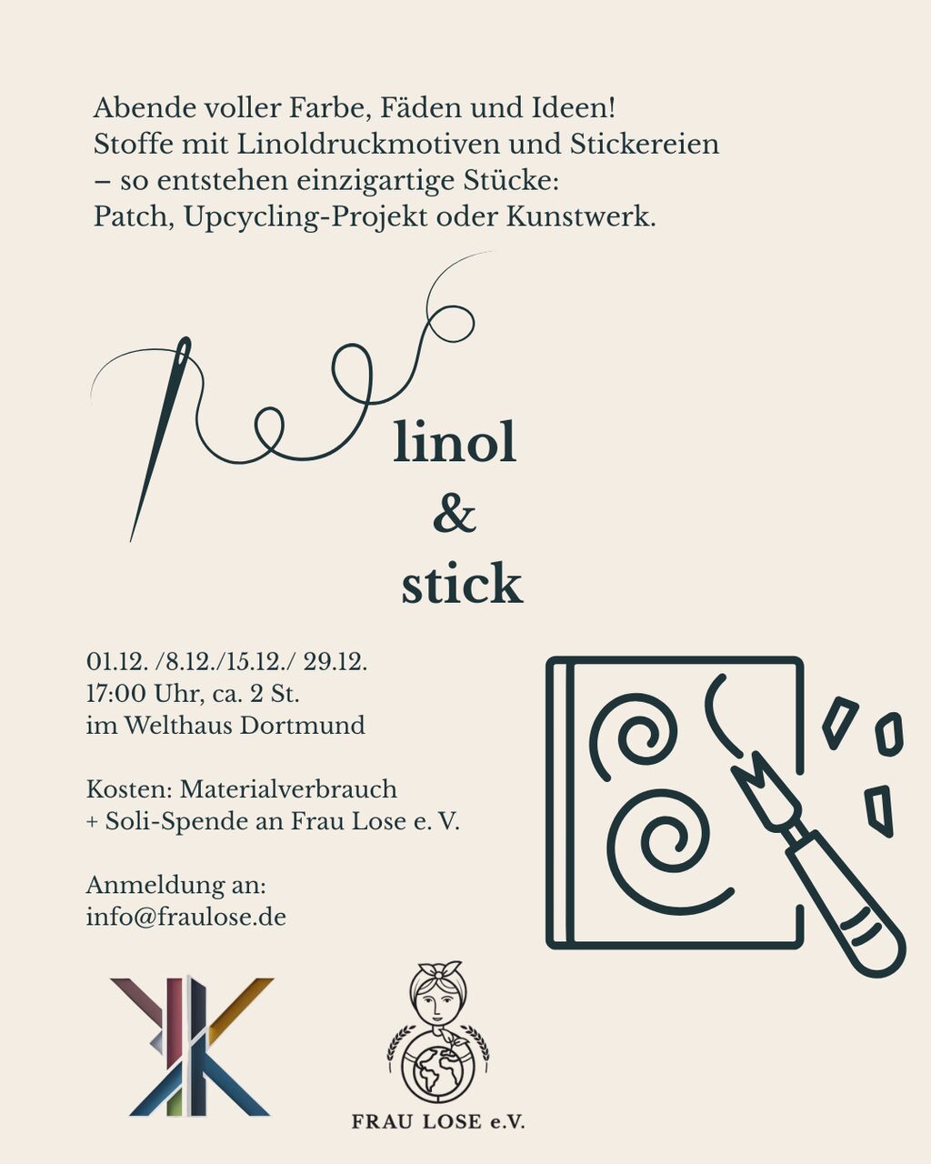 Bring dich mit – und vielleicht ein altes Kleidungsstück, das du neu beleben willst. Restliches Material ist vorhanden.