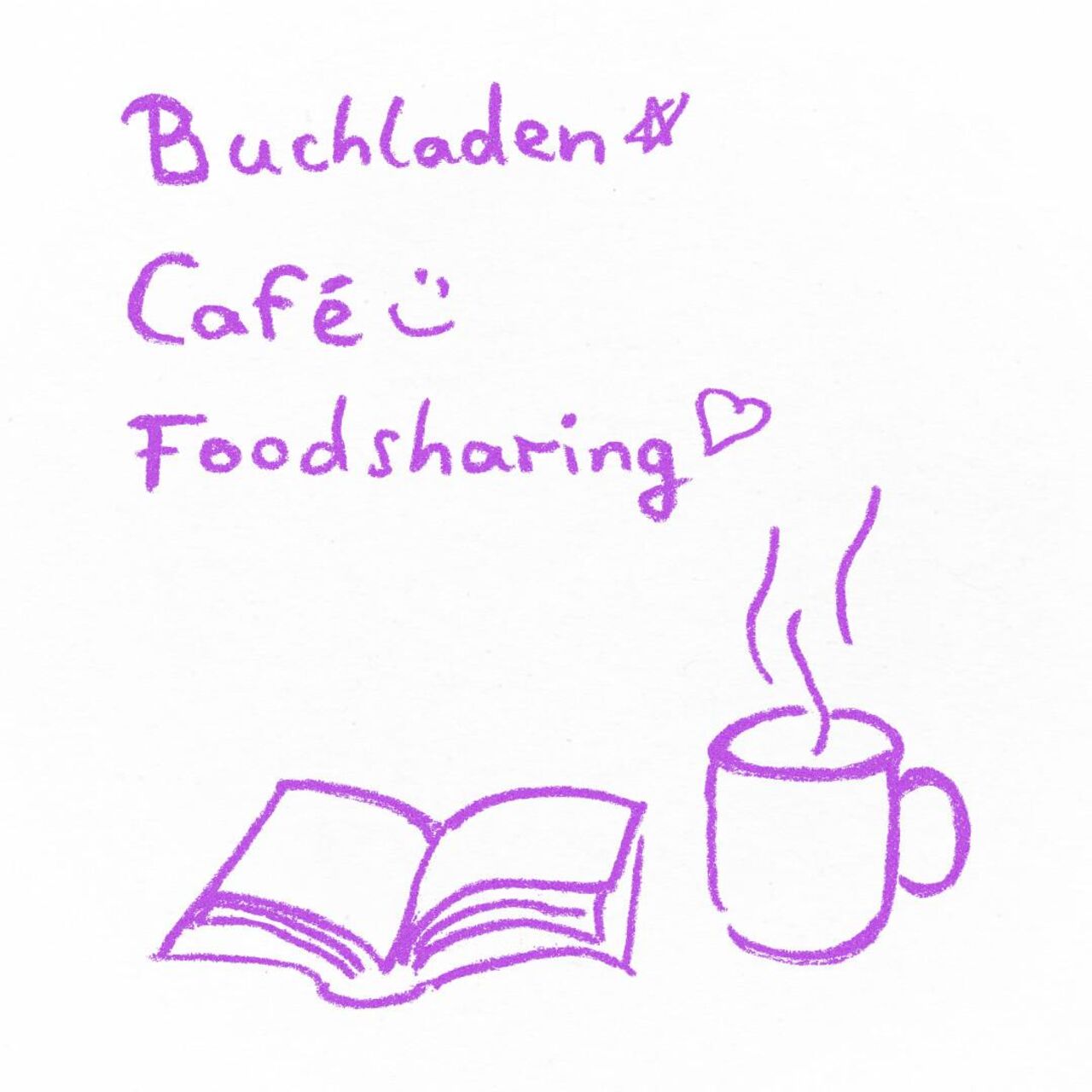 Wie jeden Freitag haben wir auch diesen Freitag wieder für euch offen. Es gibt FoodSharing, nette Gespräche und loses Zusammensein. Außerdem verkaufen wir Getränke (auch Tees und Kaffees), Lebensmittel und Bücher. Kommt vorbei!